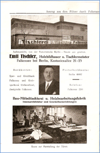 1932 Emil Tischler kauft die hier in Falkensee ansässige Tischlerei und baut diese zur damals größten Ihrer Art in der Region aus.